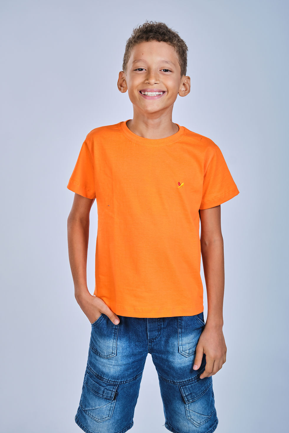Camiseta Laranja Demood Infantil Malha Penteada Algodão Total
