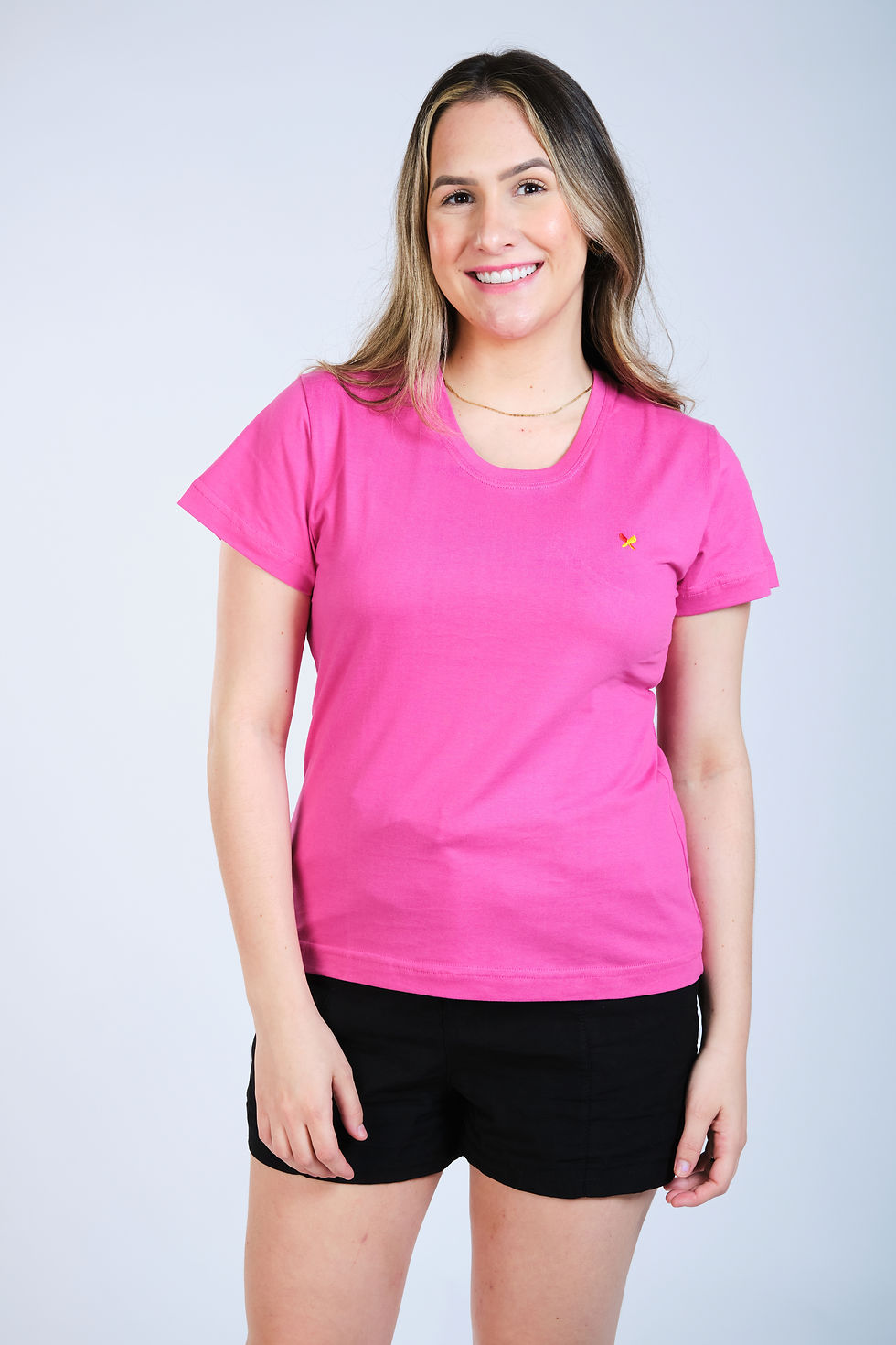 Camiseta Framboesa Adulto Malha Penteada Algodão Total
